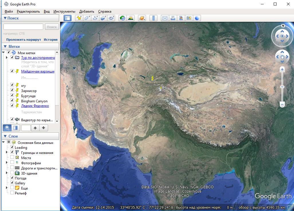 Расми 1.1. Интерфейси барномаи Google Earth Desktop