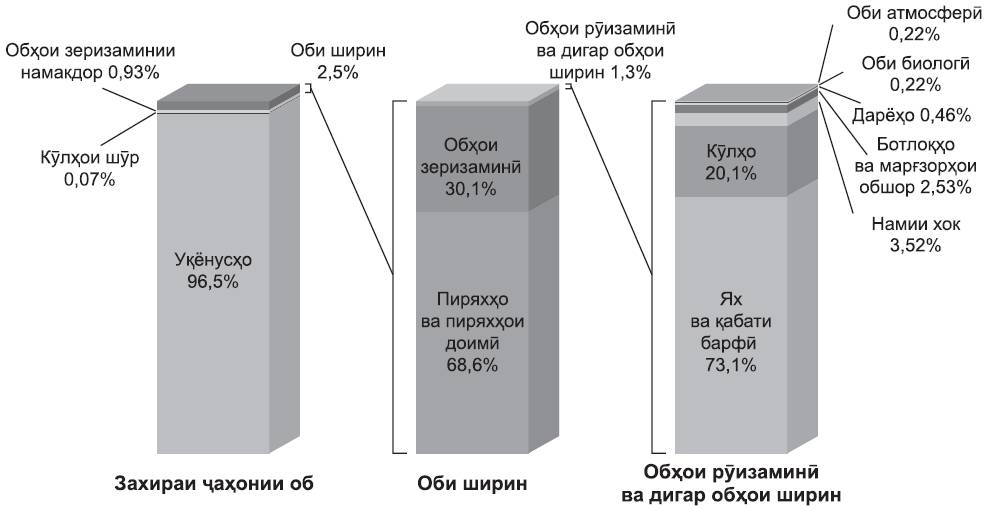 Расми 3.1. Захираҳои умумии оби ҷаҳонӣ (