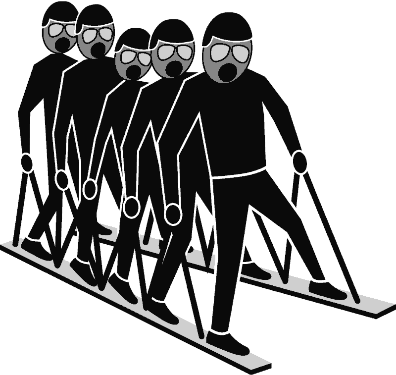 Все надели противогазы и встали на доски во главе с командиром группы.