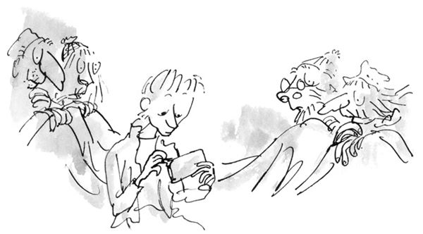 “Не волнуйся, мама, всё в порядке! – прокричала мисс Бьюргард. – А сейчас, – продолжила она, – вам будет интересно узнать, что вот эту жвачку я жую уже три месяца. Это рекорд. Он намного превысил результат моей лучшей подруги мисс Корнелии Принзметл. Она была вне себя от ярости. Теперь эта жвачка – мое самое ценное сокровище. На ночь я просто прилепляю ее к краешку кровати, а утром она такая же, как и раньше, правда, сначала немного жестковата, но, если ее чуть-чуть пожевать, она снова размягчается. До того как я начала жевать на мировой рекорд, я обычно раз в день меняла жвачку, и делала это в лифте, когда возвращалась из школы. Почему в лифте? Да потому, что мне нравилось налеплять резинку на кнопку лифта. Тогда к пальцу того, кто входил в лифт после меня и нажимал кнопку, приклеивалась моя старая жвачка. Ха-ха! Какой они поднимали шум! Особенно женщины в дорогих перчатках! Ой, не могу! Здорово, что я попаду на фабрику мистера Вонки! Я же знаю, потом он даст мне столько жвачки, что хватит до конца жизни. Гип-гип! Ура!”»