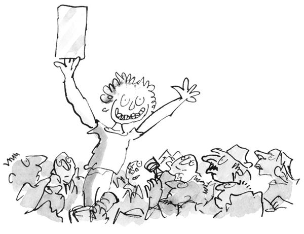 – «Когда наш корреспондент посетил семью Тиви, – продолжал читать мистер Бакет, – там, как и везде, где были найдены золотые билеты, собралось множество любопытных. Но юный счастливчик, казалось, был крайне недоволен происходящим. “Эй вы, дураки, неужели не видите, что я смотрю телевизор? – сердито крикнул он. – Не мешайте!”
