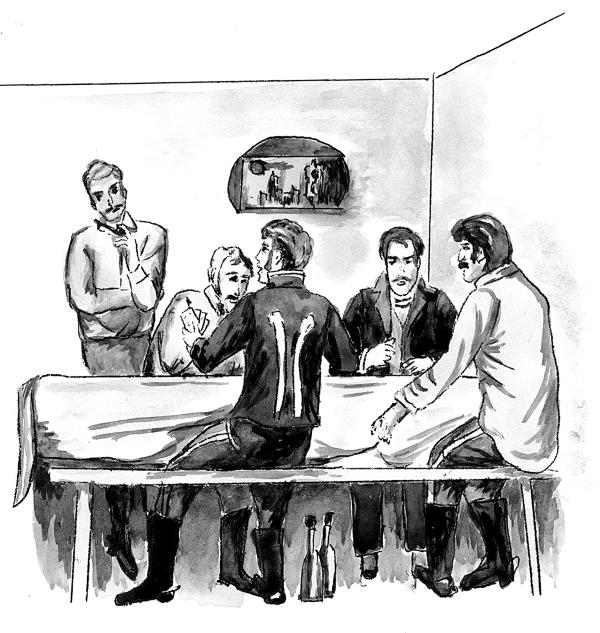 Общество самое пустое и забубенное, в котором молодые спешили равняться со старшими и все равно не представляли в своих особах ничего умного и достойного уважения.