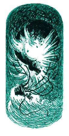 Но в человеке нет такого пузыря, его не раздуешь. Надо приделать пузырь этот к нему снаружи – все одно. А чем его надуть? Что у нас есть легче воздуха? Кажется, нет ничего!