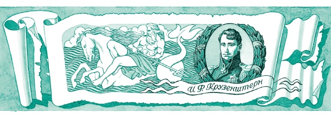 Первое русское судно перешло экватор 26 ноября 1803 года под командой капитана И. Ф. Крузенштерна. Один только командир до этого бывал уже в Южном полушарии, остальные все были новички. Должность дедушки-водяного, который в пеньковом парике и тулупе наизнанку вышел встречать гостей своих, поручена была матросу Павлу Курганову. Он явился с острогой, или трезубцем, красно балагурил, много насказал о чудесах жарких стран и выпросил у командира по чарке вина на команду, так как у него самого для потчеванья и угощения дорогих гостей не было никаких запасов, кроме морской соленой воды. Этою водою он и окатил на угощении всю команду. Обыкновенно все это делается так.