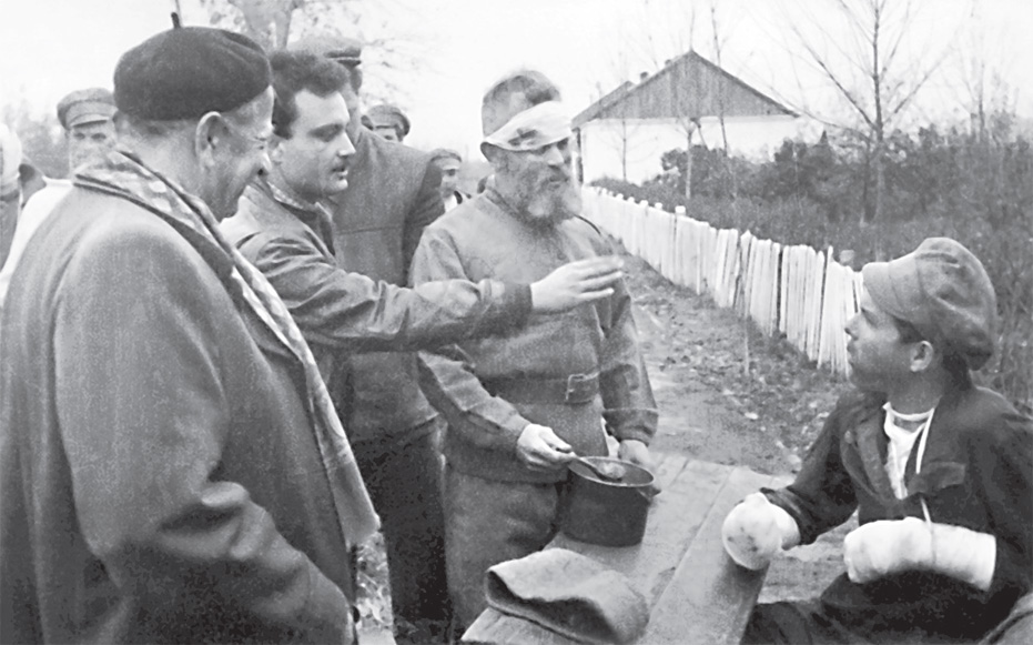 Ночь. У костра солдаты варят кашу. Из леса выходят два француза, голодные, ободранные, почти босые. Солдаты усаживают их у костра, кормят кашей, дают водки. Французы поели, выпили и заснули. «Тоже люди», – удивился молодой