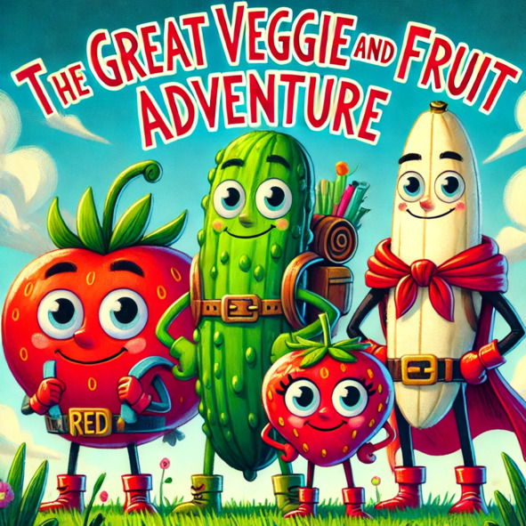 One day, a wise old potato named Spud had a brilliant idea. “Let’s go on an adventure and see what’s out there!” he said to his veggie and fruit friends