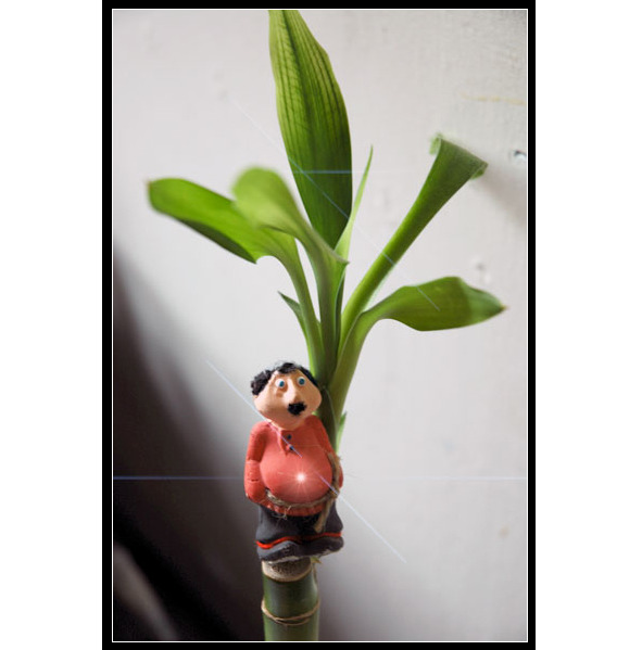 Когда Дюймовочку хотелось помедитировать, он забирался по лестнице на ствол Бамбука-в-Бутылке-из-под-Марочного-Саке. Там он стоял весь день, сосредоточив энергию внизу объёмистого живота, и упорно повторяя про себя: «Ом… Ом… Ампер… Ампир… Ом… Газпром…»