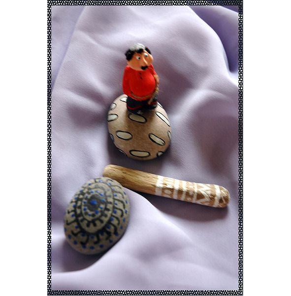 Был у Дюймовочка друг – художник, который и подарил однажды нашему герою расписные палочку и два камушка. Дюймовочек долго перекладывал их с места на место, но всё получалось как-то очень уж символично. Впрочем, так и было задумано. 2
