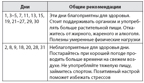 Этот лунный календарь составлен с учетом всех перечисленных особенностей. Вы узнаете, когда лучше сеять семена и поливать растения, вносить в почву удобрения и подкормки, обрезать растения, собирать урожай, чтобы он долго хранился. Даны рекомендации по работе в отапливаемой (зимней) теплице в холодное время года. Также в календаре представлена информация по поддержанию хорошего самочувствия и настроения, приведены рекомендации по выбору физической нагрузки, советы по питанию, народные приметы, связанные с Луной.