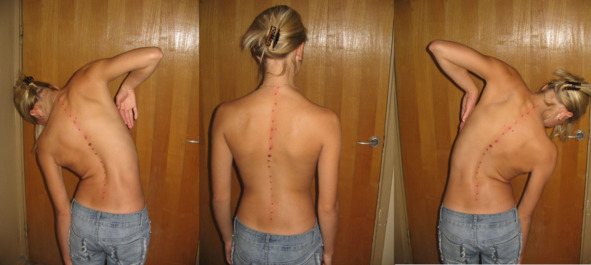 У лиц, которые регулярно в течение ряда лет занимались специальной гимнастикой для позвоночника или китайской гимнастикой Цигун, картина подвижности позвоночника выглядит иначе (рис. 3.7). Обследуемая женщина 40 лет более 10 лет занимающаяся китайской гимнастикой для позвоночника (рис. 3.6).