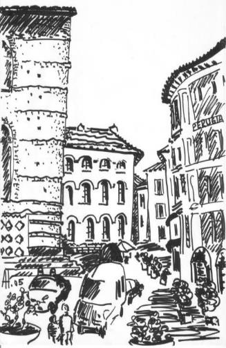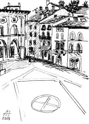 Но в небольших городах Италии возобладала, к моему вящему удовольствию, другая тенденция градостроительства, сформулированная Мессером Леоном Баттистой Альберти в конце XV века. Вместо рациональных мер для защиты города и быстроты перемещения по городу, он подумал о естественном желании жителей города пребывать в атмосфере комфортабельно замкнутого, соразмерного человеку окружения (как это по-итальянски!), об удовольствии чисто эстетическом от узнавания и следования по путям своей памяти или о будящем воображение любопытстве заглянуть за ближайший поворот.