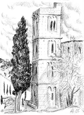 Но в действительности Тоскана – совсем не символ чего-то ещё, а вещь в себе настолько, что её культурный ландшафт включает элементы иных культур, не разрушая цельного образа. Так, на южном её конце, среди поросших кипарисами холмов и виноградников возвышается башня монастыря Сант-Антимо, построенного во времена Каролингов, а может быть, и самим Шарлеманем больше 1000 лет назад.