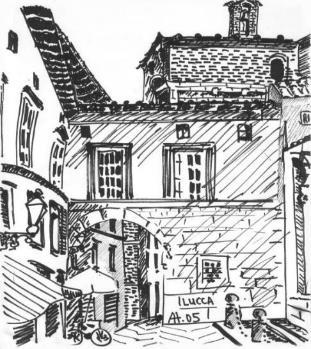 Этот город с его немного диснеевским обличьем явно импонирует северным варварам, судя по привлекательности Лукки для так называемых «экспатс» то есть американских и британских пенсионеров, ищущих здорового питания и недорогой медицины. Уже на входе во внутренний город несколько палаток, предлагающих запись на курсы итальянского, a затем пара кварталов хотя и вполне европейского, но не слишком итальянского стиля, напоминающих скорее сцену из первого акта «Meistersingers» Вагнера, чем «L'elisir d’Amore» Доницетти.