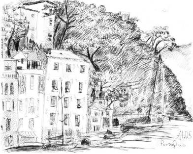 Северное окончание этого туристического рая – городок с таким же весьма ограниченным береговым пространством для купания, но с обширной пристанью для частных судов и судёнышек, принадлежавших отдыхающим. А в наборе языков, на которых говорил европейский бомонд, когда мы там побывали, явственно слышалась русская речь, особенно возле фирменных магазинов, торгующих одеждой и мужскими галстуками для солидных господ.