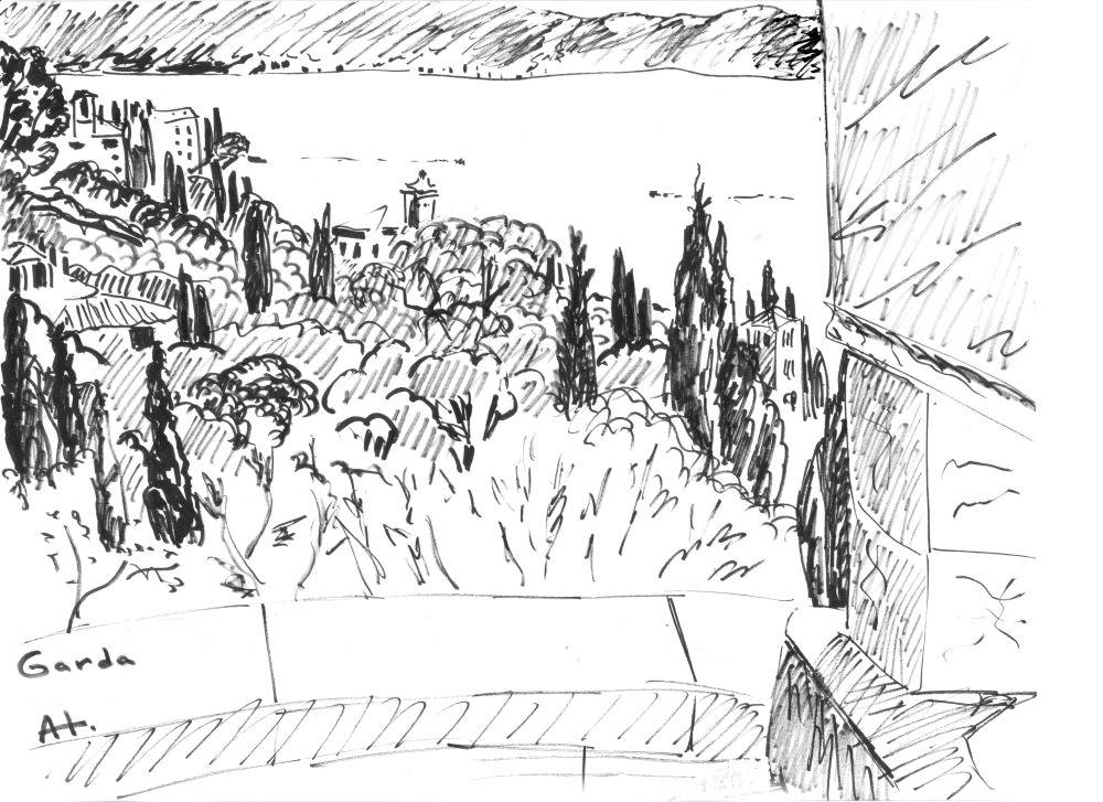 В середине лета вода в озере Гарда ещё достаточно тёплая для купания, но ветер время от времени приносит дыхание ледников и снежных вершин, заслоняющих северный горизонт.