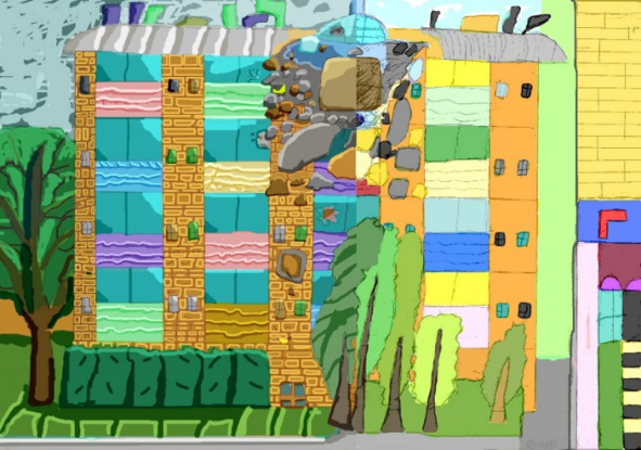 Дописав одну страницу и почти закончив вторую, я почувствовал, как все затряслось. Все вещи попадали вниз. Землетрясение – подумал я. Начал уже собираться скорее вниз, но оно все усиливалось. И вдруг, смотрю в окно, а там летит самолет. Да, настоящий САМОЛЕТ, в квартиру на 4 этаже. Интересно, чтобы вы сказали в этот момент? ^R^ 1. В квартиру влетает самолет и последний звук, который я услышал был «ДЭН». Я падаю на пол… От того, что самолет врезался, дом начал разрушаться. Самолет начал проходить сквозь квартиру и осколки уже начали падать на землю. И тут, трещина прошла по основанию дома и дом начал медленно падать.
