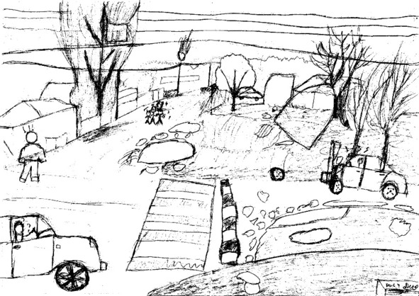 Все вокруг цвело и одновременно разрушалось. Была весна, но была авария. Обломки от самолета прилетели на цветочные деревья и начинали разгораться. Дети и люди были испуганны. Они хотели убежать от него. Но здесь, жизнь играла с ними, как ребенок со своими игрушками. Кому-то повезет, а кому-то нет.