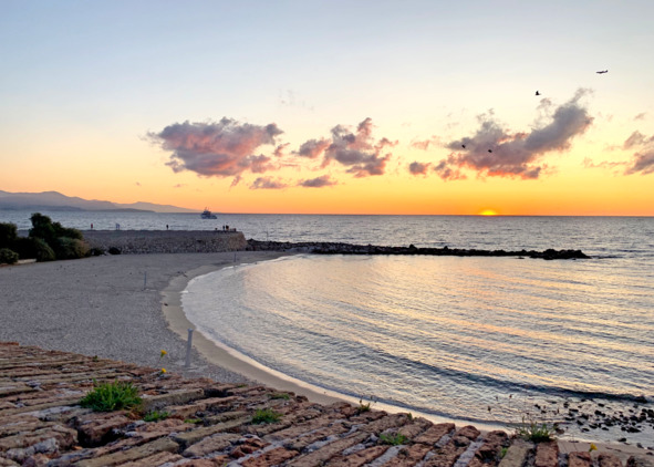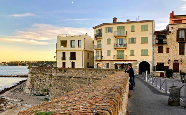 Если вы будете рассматривать картины художников, писавших на Лазурном берегу, то Антиб вы узнаете легко. На картине обязательно будут две башни в виде параллелепипедов. Одна башня – это колокольня собора. Вторая – сторожевая башня замка Гримальди, построенного в XII веке. Берег Антиба укреплен – это почти крепость. Сейчас от крепости остался небольшой бортик, вдоль которого променад. Тут и надо гулять.