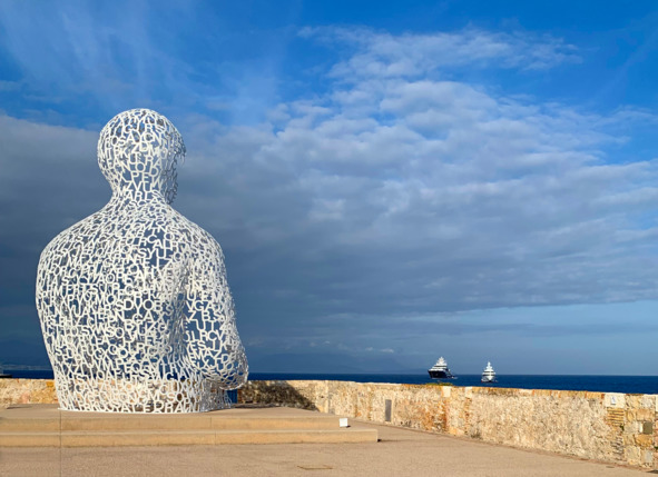 Вот ведь как бывает. Построят замок, и станет он на сотни лет главной достопримечательностью города. По замку город узнают, художники его рисуют. Ты приедешь, посмотришь на замок и радуешься, что увидел главное. А потом вдруг появится каталонский скульптор Жом Пленса и поставит на набережной полупрозрачную скульптуру из букв. Сидит «буквенный» человек и смотрит на синее море. И называется он Nomade (Странник). А вокруг туристы разные – головы задирают, охают, руками всплескивают. И будут теперь помнить не замок, а эти буквы.