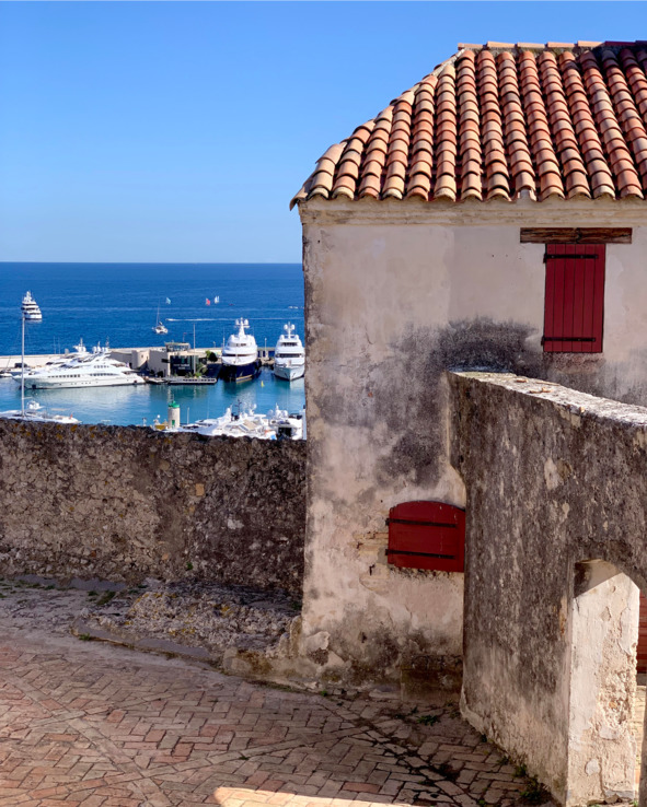 Вид со стены… там много видов. Можно посмотреть на синее море с белыми полосками яхтенных парусов, в другую сторону – вид порта. С высоты оцениваешь размеры яхты Усманова и остальной мелочевки. Еще можно увидеть песчаные пляжи, которые тянутся до самой Ниццы. И снежные Альпы, конечно.
