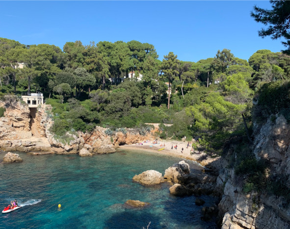 От музея Наполеона надо идти по берегу залива к Жуан-ле-Пену. Почему надо? Потому что красиво. Очень красиво. А можно искать место, где удобно высадиться тысяче солдат во главе с императором. Пляжи чередуются со скалами, на которых растут сосны, похожие на зонтики. Корни сосен тянутся по земле, на них удобно сидеть и смотреть на морскую лазурь. Или не смотреть – закрыть глаза и вдыхать аромат хвои и моря.