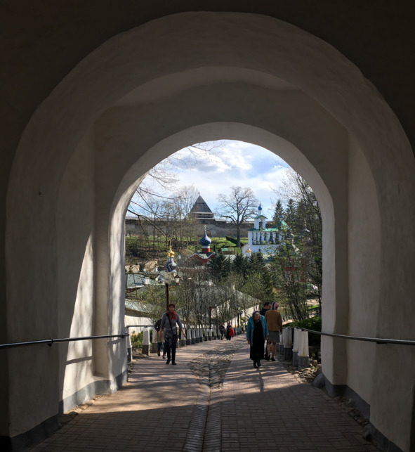 Поехал на экскурсию в Псково-Печерский монастырь, что в Печорах. Экскурсовод рассказывает об истории монастыря, о колоколах, а я не могу уйти с места, где Иоанн Грозный отрубил голову игумену Корнилию за переписку с предателем князем Курбским. Голова покатилась вниз к Успенскому собору.