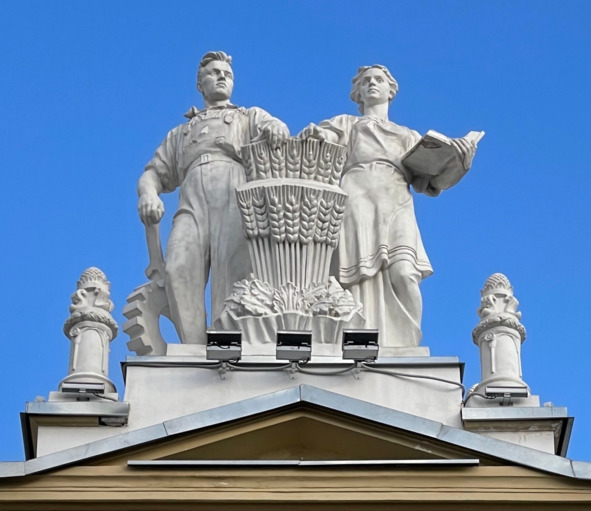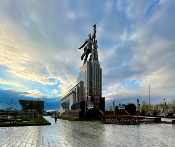Я живу в Ростокино на улице Сергея Эйзенштейна. Если посмотреть в окно, то видишь монумент «Рабочий и колхозница». Вокруг все меняется: газоны, дорожки с плиткой, скамейки, молодые деревца. Красота, короче. А парень с девушкой так и стоят, подняв серп и молот. Хоть что-то стабильное, вселяющее уверенность в завтрашнем дне – стоят они и будут стоять, несмотря на враждебные вихри, злокозненные происки, чиновническую дурость и прочие напасти.