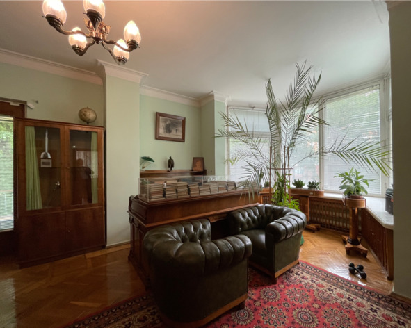 У его жены маленькая комнатка. Тут она переводила для мужа английские статьи. А больше в доме никто не жил. Для охраны домик на участке.