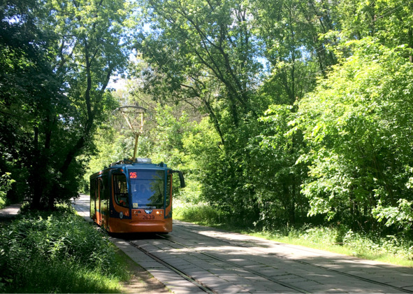 Недалеко остановка еще двух маршрутов: №11 и №25. Первый ходит к Преображенке, потом к Электрозаводской… Второй ходит к метро Сокольники. Он проходит через лес Лосиного острова, и это красиво. Там надо выйти из вагона, встать с телефоном и дождаться следующего трамвая. Получится красивый снимок: трамвай идет по зеленому туннелю. Или по желтому, когда осень. Или по белому, если выпадет мокрый снег, который прилипнет к веткам.