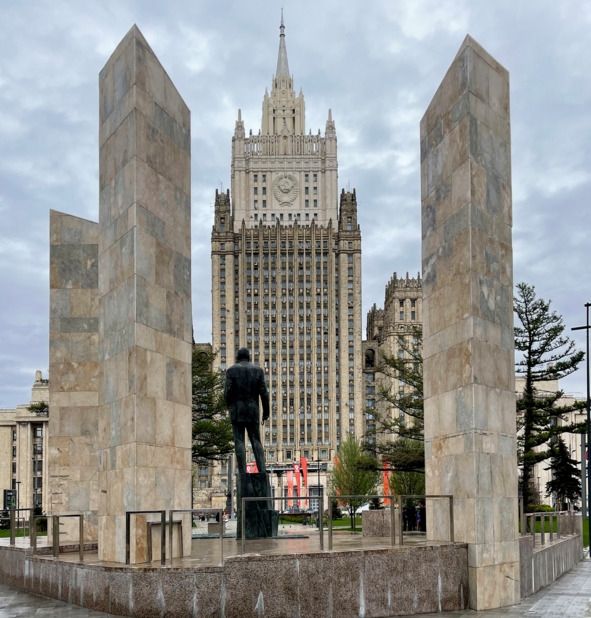 На высотном здании МИДа нет звезды. Это не случайно. Первоначальный проект был без верхней башенки и шпиля. Здание практически построили, но Сталин попросил показать ему чертежи.