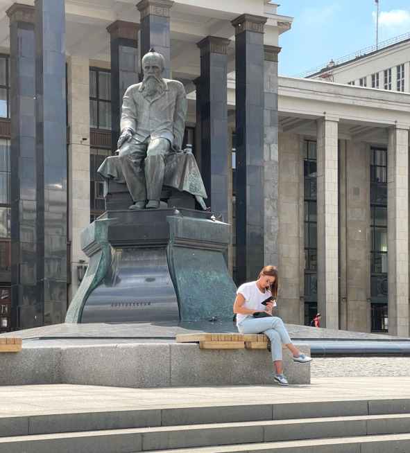 Иду мимо памятника Достоевскому, что у Ленинки. На пьедестале сидит девушка и смотрит в телефон. Жаль, что не смотрит в книгу Достоевского – это было бы так гармонично.