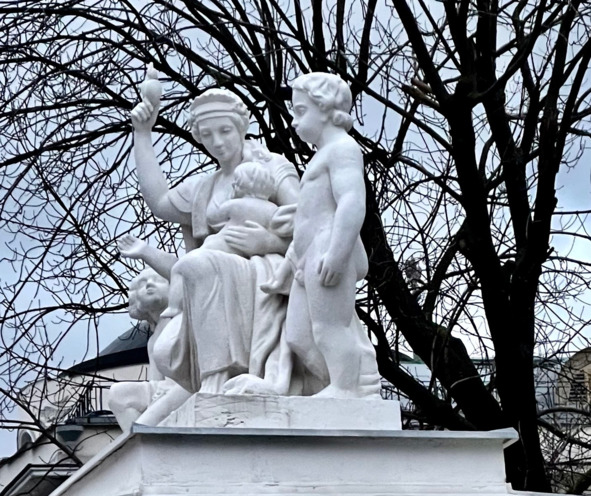 А недавно посмотрел и обомлел. Скульптуры как новенькие. А женщина подняла руку, чтобы на нее сел голубь. Прямо гора с плеч долой и камень с души свалился!