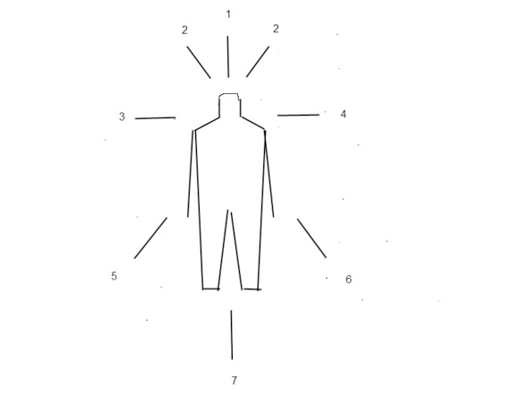 Итак, уровень Солнечной системы – горизонтальная черта справа от шеи фигуры человека. Слева от шеи – черта уровня планетарного. Далее спускаемся вниз. Справа от таза фигуры под углом 45 градусов вниз – уровень Земли. Слева от таза тоже под углом вниз – черта уровня Луны. Словно «юбочка», такая, как на рисунках древних египтян. Ну, и седьмая черта – та же вертикаль, только уже не над головой, а под ногами. Все эти черты образуют очень красивую звезду, ее можно нарисовать (без фигурки человека) и хранить в качестве оберега. Естественно, что сила этого знака возрастет, если создан он будет после проведения всей самой настройки. Тогда этот рисунок, знак – оберег будет словно Печать, закрепляющая всю проделанную работу и хранящая все налаженные связи с семью уровнями и всю полученную от них силу. (Смотрите рисунок №2)