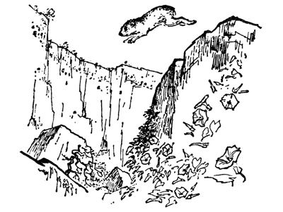 Мы двинулись по долине. Впереди шел Джейкоб, теперь лицо его выражало мрачную решимость. Мы пробрались сквозь густые дебри низкого кустарника и наконец достигли первой груды камней, нагроможденных друг на друга так несуразно, что, казалось, они того и гляди рухнут. Здесь мы рассыпались во все стороны, как терьеры, и чуть не ползком двинулись в обход скалы, заглядывая в каждую щель – нет ли там кого-нибудь. Как ни странно, первому повезло Джейкобу; он высунул голову из чащи кустов и позвал меня, его потное лицо так и сияло.