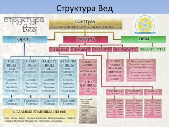 составляет ведическую литературу. Упанишады являются частью Вед. Затем Вьясадева обобщил ведическое знание для учёных и философов в