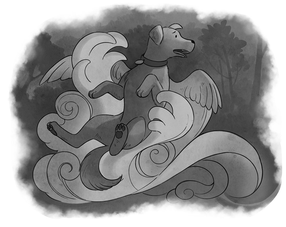 Фонарик в её руке пролил свет на страшную сцену. Их глупую, верную, милую, а теперь и перепуганную собаку держала в воздухе пара туманно-серых рук, выходящих из бесформенной, закрученной вихрем массы. Бедняжка Шипучка снова залаяла, пронзительно и испуганно, беспомощно повиснув в воздухе, а клубящееся облако двигало её то туда, то сюда. А что это у неё на спине? Не может быть! Кинджал часто заморгал. Не почудились ли ему эти крылья за собачей спиной? Но сейчас было не до того. Он должен был немедленно спасти любимицу всей семьи от злобного нечто, которое держало её в объятиях, чем бы оно ни было.