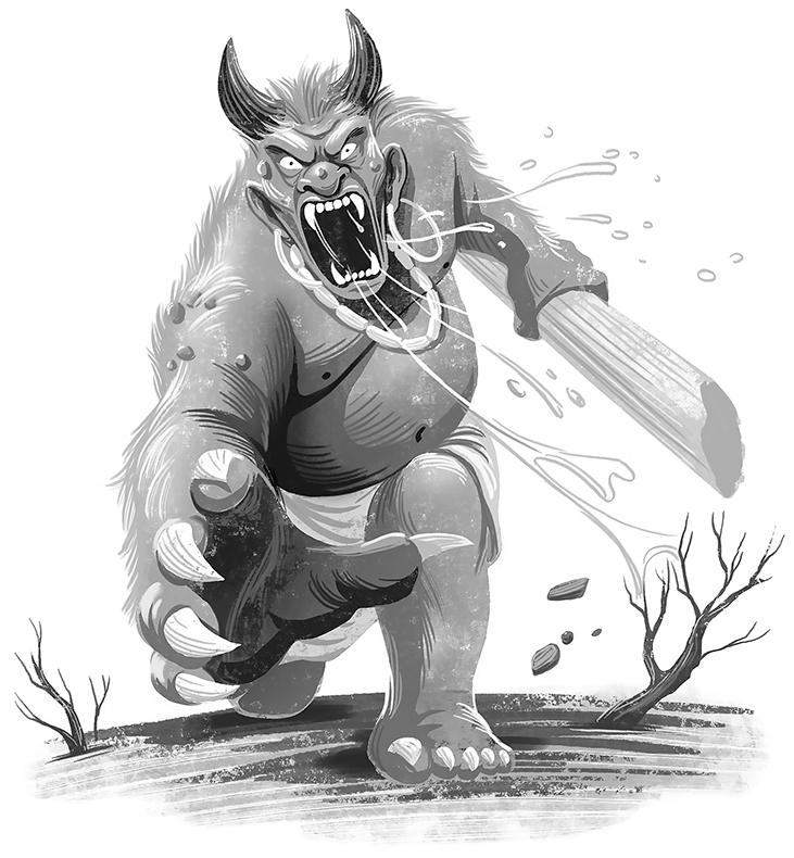 Чудовище слепо заметалось по кухне, срывая острыми как лезвия когтями дверцу с холодильника, круша ножищами шкафчики. Ему приходилось пригибаться, но всё равно рога оставляли глубокие дыры в потолке, и побелка сыпалась сверху прямо в его прищуренные глазки.