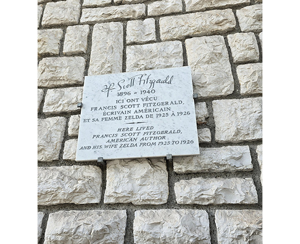 Френсис Скотт Фицджеральд, автор нашумевшего романа «Великий Гэтсби», приехал сюда, чтобы начать писать новый роман «Ночь нежна». Теперь об этом напоминает мемориальная доска на каменной стене двухэтажной виллы, в которой он жил. Сейчас это пятизвёздочная гостиница Belles Rives. Через кружева металлических ворот видна терраса с голубым рисунком кафельных плит, нависшая над морем, в окружении вечнозелёных кустарников и карликовых пальм.