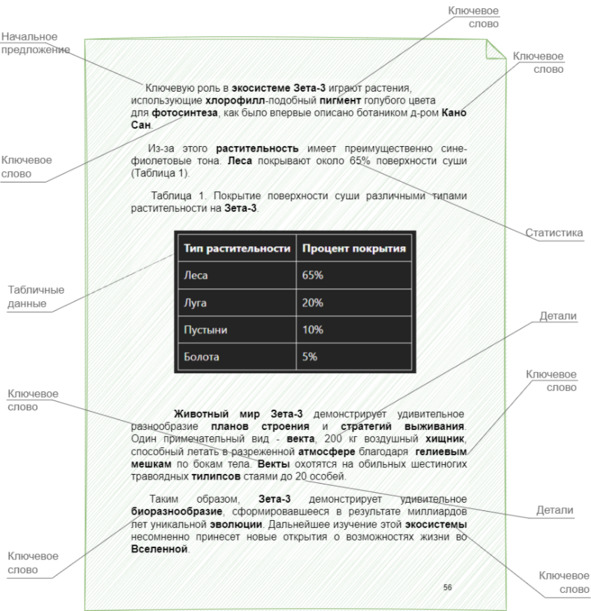Рисунок 4 – Элементы текста для эффективного скимминга (примеры конкретной информации).