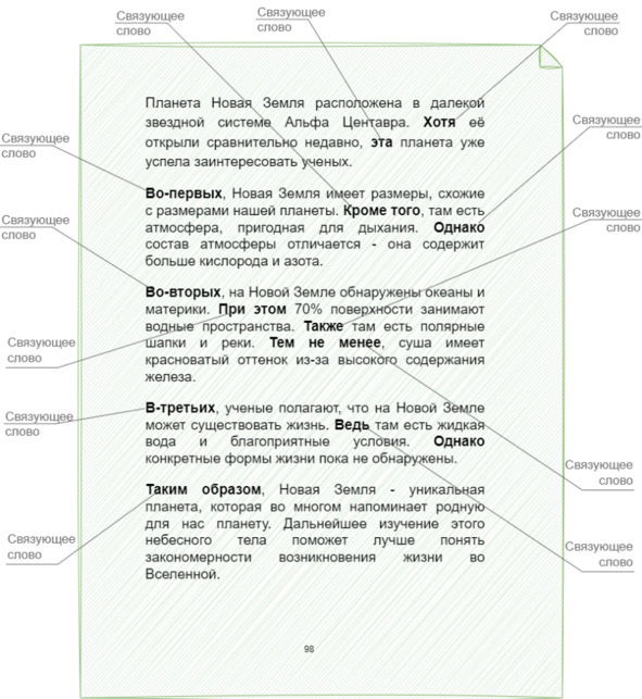 Правильное использование связующих слов может значительно повысить качество вашего письменного текста, делая его более структурированным, связным и понятным для читателя. Они направляют читателя и облегчает понимание и взаимодействие с текстом.