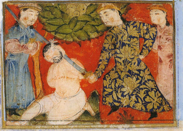 Исполнение наказания. Чингис-Хан поручил казнь последнего тангутского царя своему соратнику, который по иронии судьбы оказался сыном шамана Теба Тенгри. Он заработал при этом дворцовый шатёр, который Хан возил с собой, а также подарки из золота и серебряные сосуды. Из Ильханлыга.