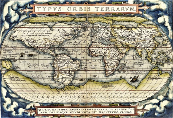 Карта мира. Театр мира Авраама Ортелиуса (Abraham Ortelius) 1570 год.