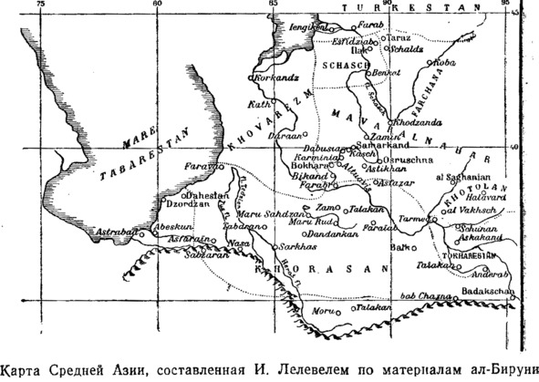 Карта Средней Азии, составленная по материалам ал-Бируни.