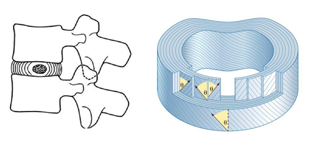 В здоровом диске между ламелями (слоями кольца) присутствует сеть волокон коллагена II типа с включением версикана и аггрекана, белков, удерживающих воду. Данная «прослойка» выполняет функцию смазки и позволяет ламелям скользить относительно друг друга при движениях. Такое независимое «скольжение» ламелей позволяет диску «мягкую» деформацию и предотвращает появление зон износа в волокнах наружных слоев. Для возврата ламелей в исходное положение предусмотрен механизм возврата к первоначальной форме. Диск прошит насквозь нитями эластина и коллагена II типа, соединяющие ламели вместе своеобразными «мостиками».