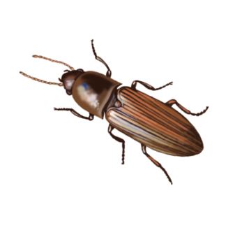 Жук-щелкун – до 2 см длиной, чаще около 1 см. Имеет специальный отросток на груди. Когда, упав на спину, жук выгибается, отросток соскакивает с упора, жук подпрыгивает и встает на ноги. При прыжке слышен слабый щелчок. Тропические щелкуны достигают размеров 5 см; они могут еще и светиться, как жуки-светляки.