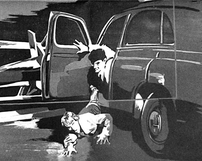 Милиционер-регулировщик, стоявший неподалеку, бросился наперерез автомобилю. Шофер так резко вильнул машиной, что ее занесло по мокрому асфальту вбок. Она сшибла регулировщика, рванулась вперед и скрылась за углом ближайшего переулка.