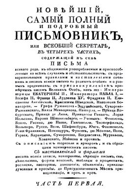 Для того, чтобы научить российский чиновничий люд правильному письму, в начале XVIII века начали издаваться «письмовники» – сборники образцов документов. Предшественниками «письмовников» были «формулярники», известные на Западе в VII веке и появившиеся на Руси не позднее XV столетия. Они содержали образцы построения документов по определенной схеме, шаблонные наборы фраз и выражений, являвшихся неотъемлемой частью формулярного этикета и отражавших официальные отношения. Другой вид ранних письмовников – «титулярники», содержавшие сведения о том, как записывать полный царский титул. Цвет бумаги, которая могла быть синей, оранжевой, палевой и прочей, авторы письмовника советовали выбирать осторожно, чтобы не подвергнуться упреку в недостатке вкуса.