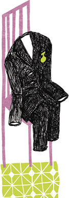 Тут няня к костюму подходит. Медальку с него отстегивает, достаёт деревянные плечики и костюм в шкаф убирает.