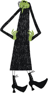 Ты спросишь: откуда у неё такое ожерелье? Отвечу: её сынок из Африки прислал. Он там в диком племени зубным техником трудился. Голова у ведьмы трясётся, зубы клацают. И чёрные машины по улицам туда-сюда носятся.