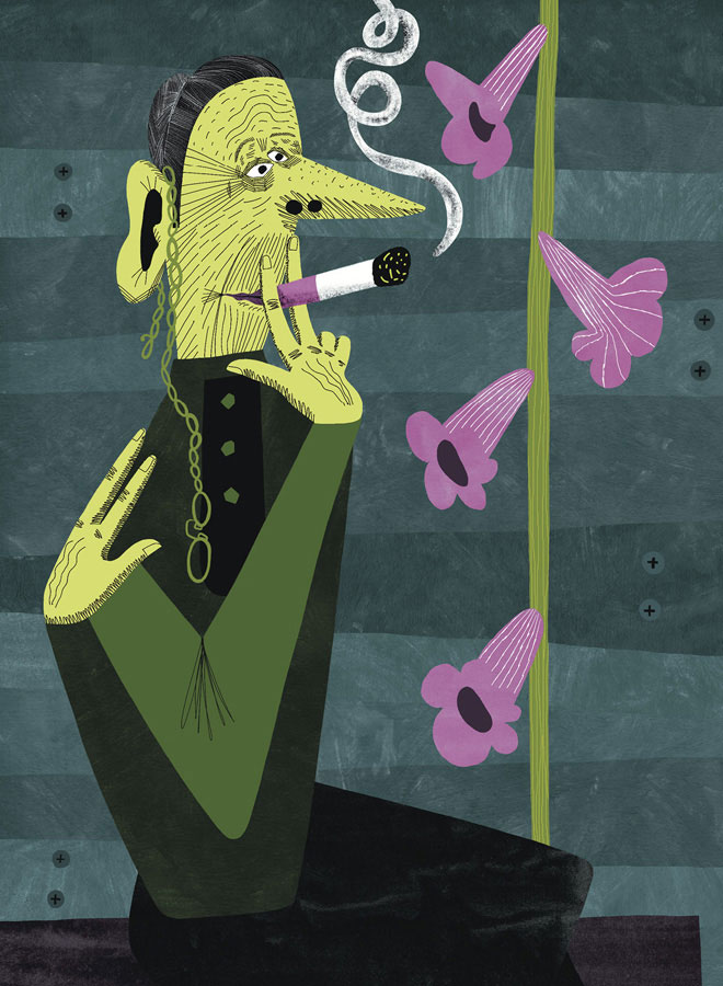 Жила в деревне одна старушенция. На ведьму похожа, но добрая. Только странная: плоская вся, в чёрном платье, в ботиках чёрных на каблучке. На ухе пенсне болтается. Папироски, как мужик, одну за другой смолит. (Это, ты знаешь, юный друг, вредно для здоровья. Сам скоро брошу курить, обещаю тебе.) И всегда у неё под рукой чёрный саквояжик.